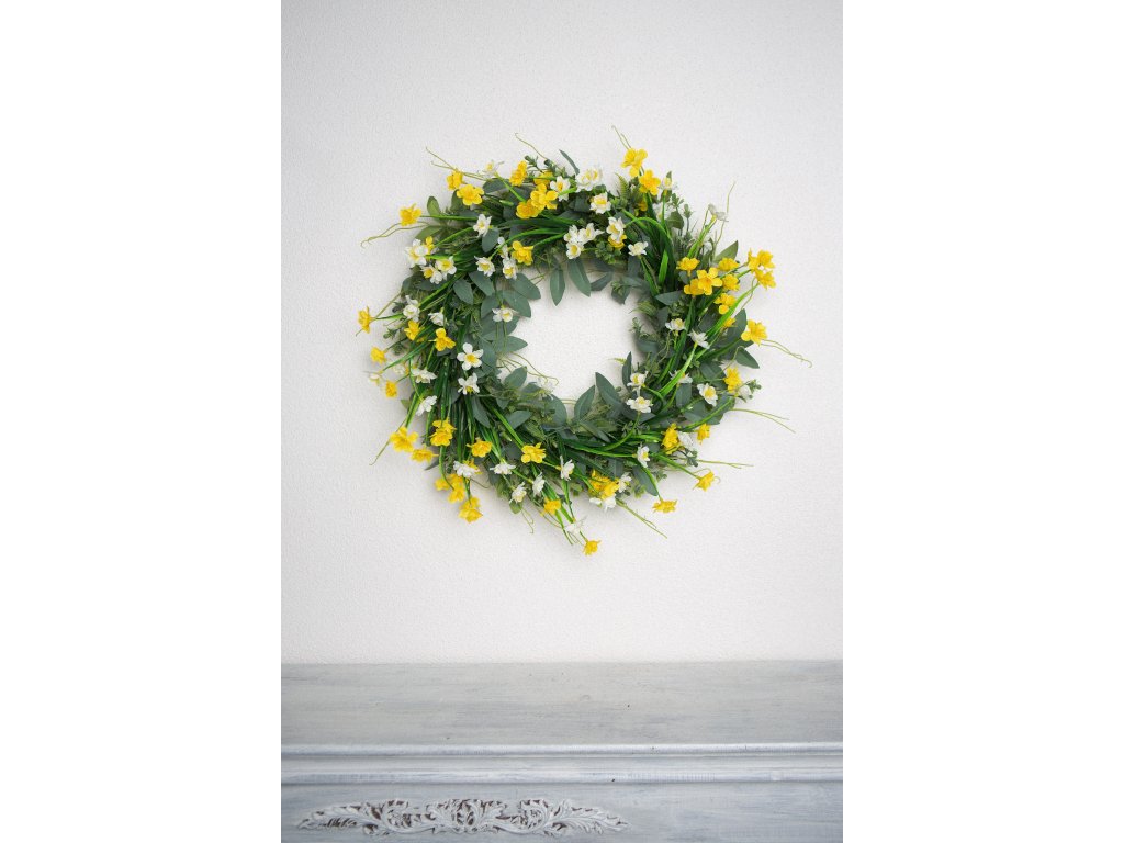 Jarní věnec na dveře s narciskami