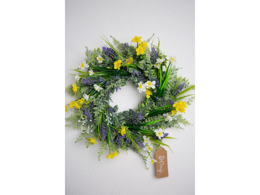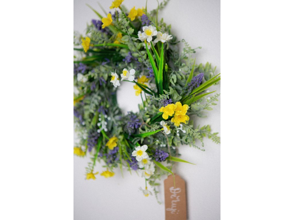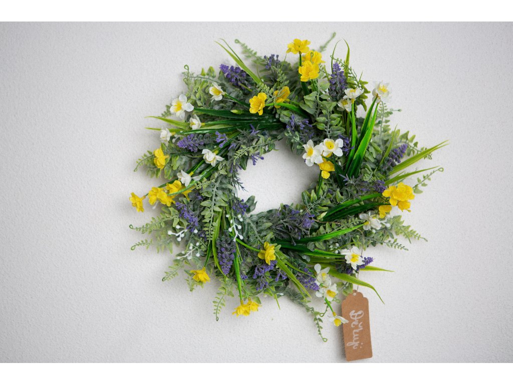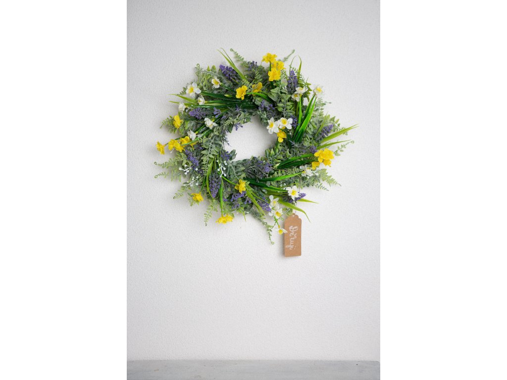 Jarní umělý věneček - průměr cca 35 cm.