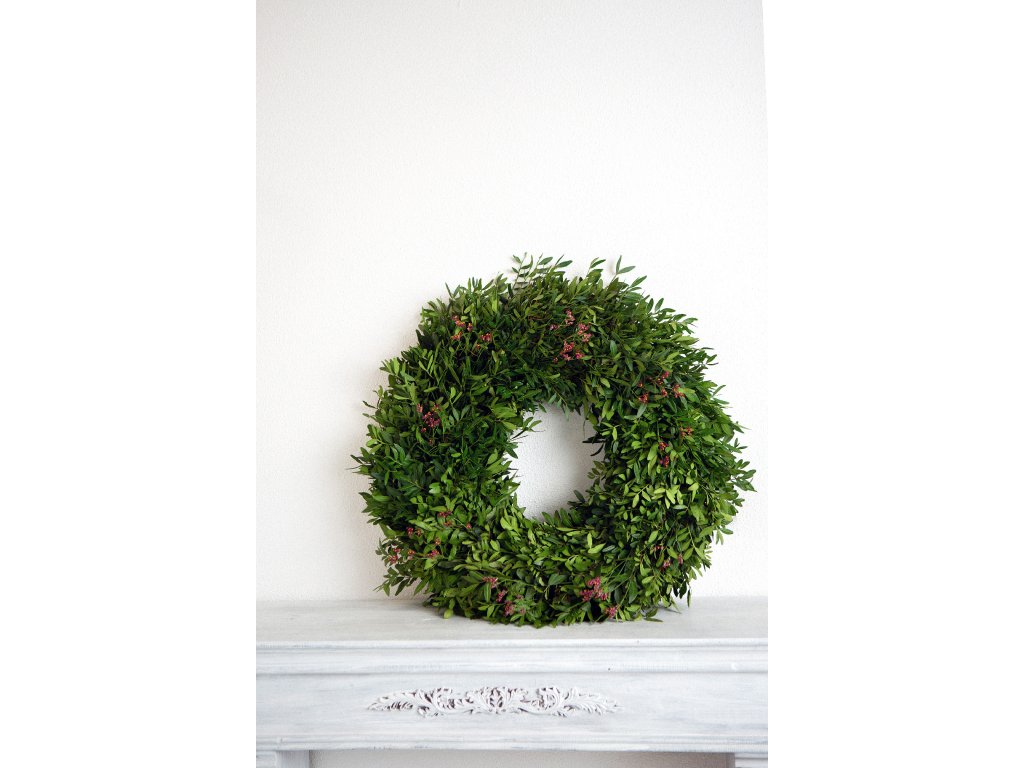 - věnec je uvázaný z větviček pistácie, doplněný sušenou limonkou